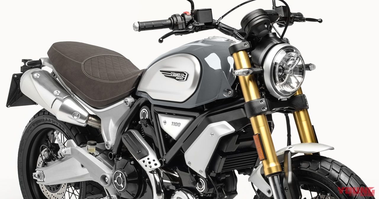 スクランブラーが3つのエンジン(250、350、450)で発売されていた1960年代と同じように、現代に復活したドゥカティ・スクランブラーにも3つの排気量帯が用意されることになった。最後に登場した1100は、排ガス規制ユーロ4をクリアした空冷2バルブV型2気筒エンジンを搭載し電スロなどでアップデート、「アクティブ」、「ジャーニー」、「シティ」という3つのライディングモードが設定された。またボッシュ製コーナリングABSやトラクションコントールといった電脳装備も導入し、気軽に付き合えるスクランブラー本来の持ち味を守りつつ経験豊富なライダーの高い要求にも応える仕上がりとなっている。1100のラインナップは3種類、STDのスクランブラー1100、スクランブラー1100スペシャル、スクランブラー1100スポーツから選ぶことができる。
