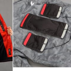 軽量+薄手生地を採用した電熱インナー、e-HEAT インナーパーカも登場。中綿を使用しないため、スリムタイプなど様々なアウタージャケットと組み合わせやすい。街着として単体で着用できるデザインも魅力的だ。車載12V 電源と専用バッテリーに対応。