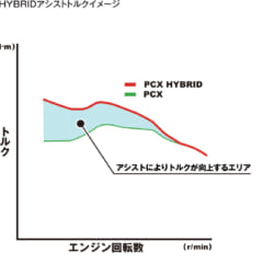 125ccエンジンに量産2輪車世界初のハイブリッドシステムを組み合わせた。モーターアシストならではのトルクアップにより、PCX本来の利便性に加え、より力強い加速フィールと機敏なスロットルレスポンスを実現している。モード切り替えも装備。