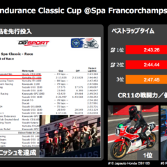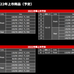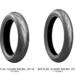 サイズはF:110/80R18・R:150/65R18の前後ワンサイズ展開。このジャンルは現在、独コンチネンタルのほぼ独占状態となっているが、技術者は「足回りなどのセッティングは不要で、ポンと付け替えてもらうだけでタイムが上がる」と自信を見せる。ヨーロッパの旧車耐久レースなどでテストを重ねており、スパ・フランコルシャンのレースではCR11を履いた車両が、他社タイヤの車両より4.2秒速いタイムを記録しているという。