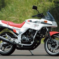 環境規制で2ストに逆風が吹く’80年、2ストに精通するヤマハの集大成として製作。レーサーTZ250を基にしたパラツインに、量産ロード初のモノサスを搭載。車重も軽く、抜群の速さを見せた。翌年、45psのRZ350も登場。