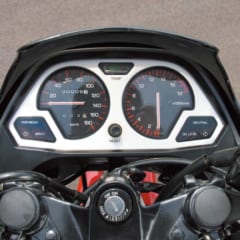 前ページのインテグラが国内仕様初のハーフカウルなのに対し、エンジンサイドまで覆うフルカウルは本作が初となる。XJ750EをベースにエンジンをFI化し、回転計を含めてフル液晶メーターを採用。風洞実験で開発したFRP製カウルと相まって、未来感を押し出した。車名のDはDEVELOPの意だ。