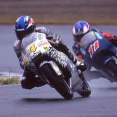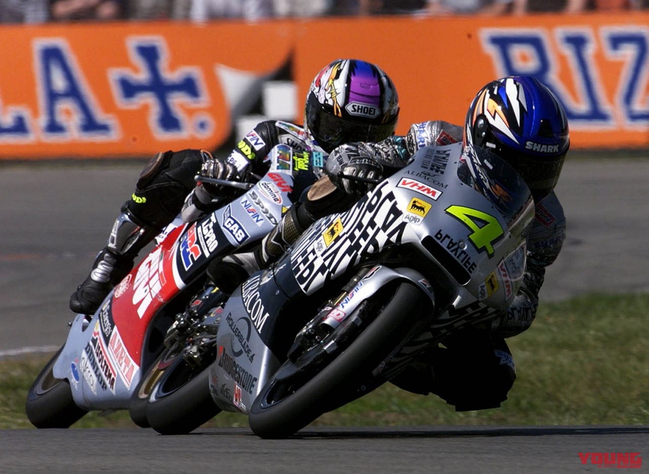 そして1998年、東選手は開幕戦の日本GPで3位に入賞してWGP初表彰台に登壇すると、その後も3度の3位入賞。そしてシーズン終盤の第13戦オーストラリアGPで初優勝を挙げ、翌年の快進撃につなげました。1999年も同じチームからの参戦となった東選手は、開幕から3連勝を挙げ、シーズン折り返し地点となった第8戦イギリスGP終了時点で5勝をマーク。20点差のポイントランキングトップに立っていたのです。
