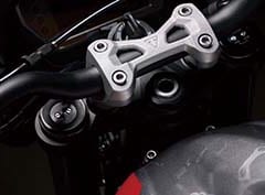 実際、ストリートトリプルRSのエンジンとモト2マシンのエンジンはベースを共有する。最高出力も前者の123psに対し、後者は140ps。耐久性確保のため、レブリミッターに2000rpm(ストリートトリプルRS:12500rpm/モト2エンジン:14500rpm)の差があることを踏まえれば、ライトチューニングと呼べる範囲に留められている。