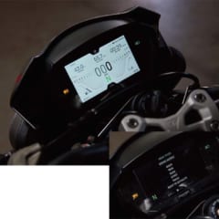 ライディングモードには、レイン/ロード/スポーツ/トラックの4パターンがあり、それぞれにスロットルマップ、ABS、トラクションコントロールが連動。ユーザーの好みでカスタマイズできるライダーモードを加えれば、計5パターンの中から自在に選択し、切り換えることができる。