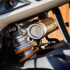 メインフレーム、シートレール、スイングアーム、ショーワBPFフォーク、オーリンズSTX40モノショック、燃料タンクなど、車体を構成する基本コンポーネントは’17年に登場した現行モデルから引き継がれ、エンジンの基本設計も同様である。