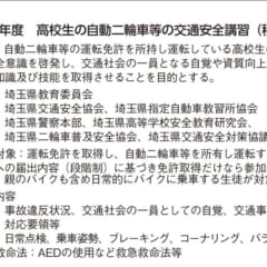 【概 要】埼玉県は、三ない運動をやめて条件付きの届出制とし、今年度から県内の各エリアで「高校生の自動二輪等交通安全講習」を始めている(※経緯については11月号参照)。今回は、10月20 日(日)に秩父自動車学校で開催された秩父エリア講習会の内容および利用者の実態として参加高校生の声をお伝えしたい。