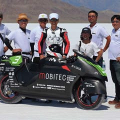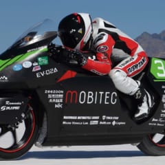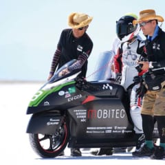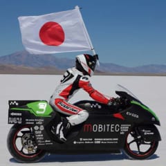 ボンネビルとはアメリカのユタ州にある塩湖が干上がった広大な平原のことで、ボンネビル・ソルトフラッツとも呼ばれている。毎年夏にこの平原を利用して最高速記録に挑戦する競技が行われるが、この競技でモビテックの「EV-02A」が電動モーターを動力源とするEVバイクの世界記録を更新。2011年に記録された316.9㎞/hを更新して、329㎞/hを記録したのだ。