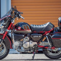 乗り味はモンキー125そのもので、カウルが付いたとしてもハンドリングに影響はなく、軽快にウルトラを追いかけ回す。ステンレス製フルエキのフィッシュテールマフラーは、シングルエンジン特有の小気味よいサウンドを奏で、大排気量Vツインのビートには負けるが、クルージングしていて心地よく、ノンビリどこまでも走りたくなるではないか。また、トップケースやサドルケースは迫力あるスタイルを生み出すだけでなく、収納スペースとしてしっかり機能し、荷物を満載にして遠出もしたくなってくる。125ベースの2代目は、立派なツアラーだぞ‼