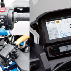 アドベンチャースポーツESのEERAはメーターパネルのメニューからセッティングが行え、オンロード向けとしてソフト/ミディアム/ハードの3種類のモードを持つほか、オフロード専用モードをプラス。また、リヤのスプリングプリロードはサスペンションのモード設定とは別に、1人乗り/1人+荷物/2人乗り/2人+荷物の4種類に加え、ユーザー設定も可能だ。また、ダンピング特性も前後とも24段階に調整することができる。これにIMUで強化されたトラクションコントロールや、エンジンブレーキコントロール、ウイリーコントロール、コーナリングABSといったSTDと共通の電子制御まわりをプラス。