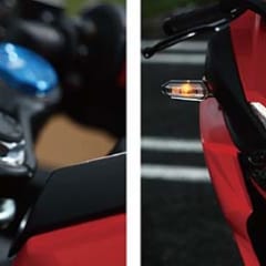主要諸元 ■全長2065 全幅725 全高1095 軸距1390 シート高790(各mm) 車重167kg ■水冷4スト直列2気筒DOHC4バルブ249cc 最高出力38ps/12500rpm 最大トルク2.3kg-m/11000rpm 6速リターン 燃料タンク容量14L ■タイヤサイズF=110/70-17 R=140/70-17
