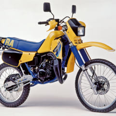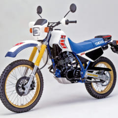前モデルのKL250からカムシャフトを1本追加したDOHCになっただけでなく、4ストは空冷が普通だったところで水冷化するという、カワサキらしいいきなり飛び道具という感じが素敵。ただ、最も注目すべきはオフロードでの高性能ではなく”メーター”なのだ。KL250では丸型のタコとスピードのふたつで、このKL250Rでは、タコとスピードが弁当箱のようなケースに入った初代RZ50とそっくりのモダンな一体式に。回転式ダーツに”たわし”の項目があるように、まだオフ車でも立派なタコメーターはあった時代。オフにタコなんていらねぇよ、が主流になるのはこの少し後である。