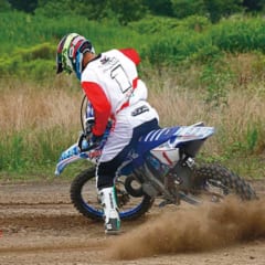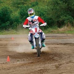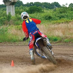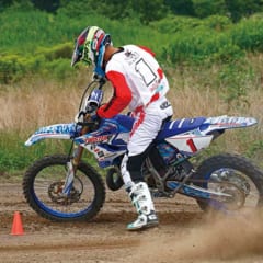 オフロードライディングと言えば、モトクロスの華麗なジャンプテクニックや、ハードエンデューロ系の丸太越え、急斜面のヒルクライムといった派手なセクションに目が行きがちだが、成績を上げたい! ラップタイムを縮めたい!! 上手く走らせたい!! というなら、コーナリングの練習は近道のひとつだろう。