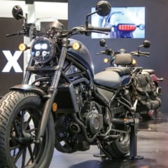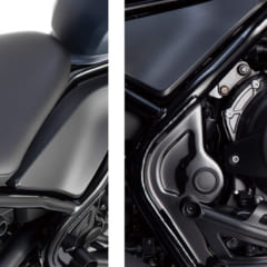 くびれとシンプルなボバースタイルが自慢のレブル。特徴はそのままに、新型はよりスタイリッシュになった。最大トルクは4.40→4.41kg-mとなり、燃費もわずかにアップしている。車重は従来から1kg増。