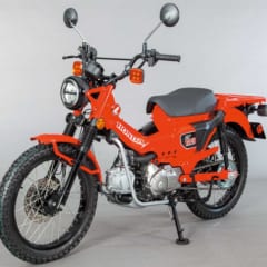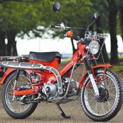 CT125のイメージベースとなっているCT110は、’61年の初代CA100Tから海外で進化を重ね、’80年に110として登場。アップマフラーやガード類による悪路対応、減速比を変更して登坂力を高める副変速機など、不整地を走るために数々の専用装備が与えられた。輸出先の豪州では、ほぼ仕様を変えずに販売され、’12年で絶版に。国内の人気も高く、今も高い中古車相場を誇る。