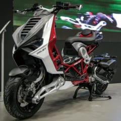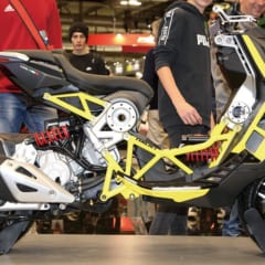 スチールトレリスフレームにハブステアのイタリア製バイクといえばビモータを思い浮かべそうなものだが、もうひとつ忘れてはいけないバイクがある。創業60周年を迎えたイタリア・イタルジェットの「ドラッグスター」だ。公式サイトに「冗談ではなく、これは本当なのだ」と書いてあるぐらいに攻めたデザインで、2018年のEICMAでもプロトタイプを展示していたが、2019年のEICMAを経ていよいよ予約受注を開始。エンジンは125ccと200ccを用意し、フロントにはI.S.S.(インディペンデント・ステアリング・システム)と呼ぶ独立した操舵機構を搭載。前後ともビチューボ製シングルショックだ。