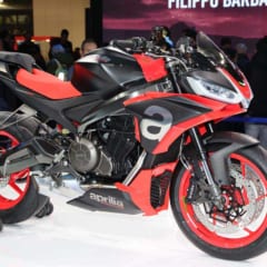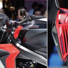 外装は、ミドルカウルを専用とし、エンジンを露出。テールのデザインも異なり、RSで極小だったタンデムシートの面積が拡大している。ミドル級の”ラクッ速”でもアプリリアが革命を起こすか?