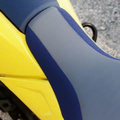 スタンディング 時も考慮されてスリムな形状にデザインされたタンクと。着座部もスリムになっているため足つき性の向上にも一役買っている。
