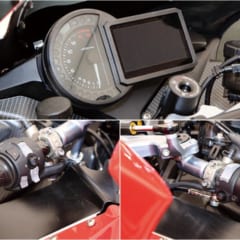 ’90~00年代には、オリジナルメーターを採用したビモータだが、テージH2では原点に返る形で、ドナーの計器をそのまま踏襲。左右スイッチやグリップ、ブレンボ製マスター、オーリンズ製ステダンなども、H2と共通だ。