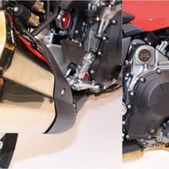 カウル前面はインテークらしき造形だが、ダクトを介してエアクリーナーボックスにつながるのは、左ウイング下の開口部のみ。