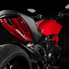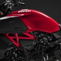 ド迫力の体躯に159馬力のLツインを搭載し、どう見てもマッスルクルーザーの出で立ちながら、国産ビッグネイキッドを思わせる扱いやすさとドゥカティらしいスポーツ性のミックスに成功しているディアベルは、その独自性の強いデザインでも高く評価されている。