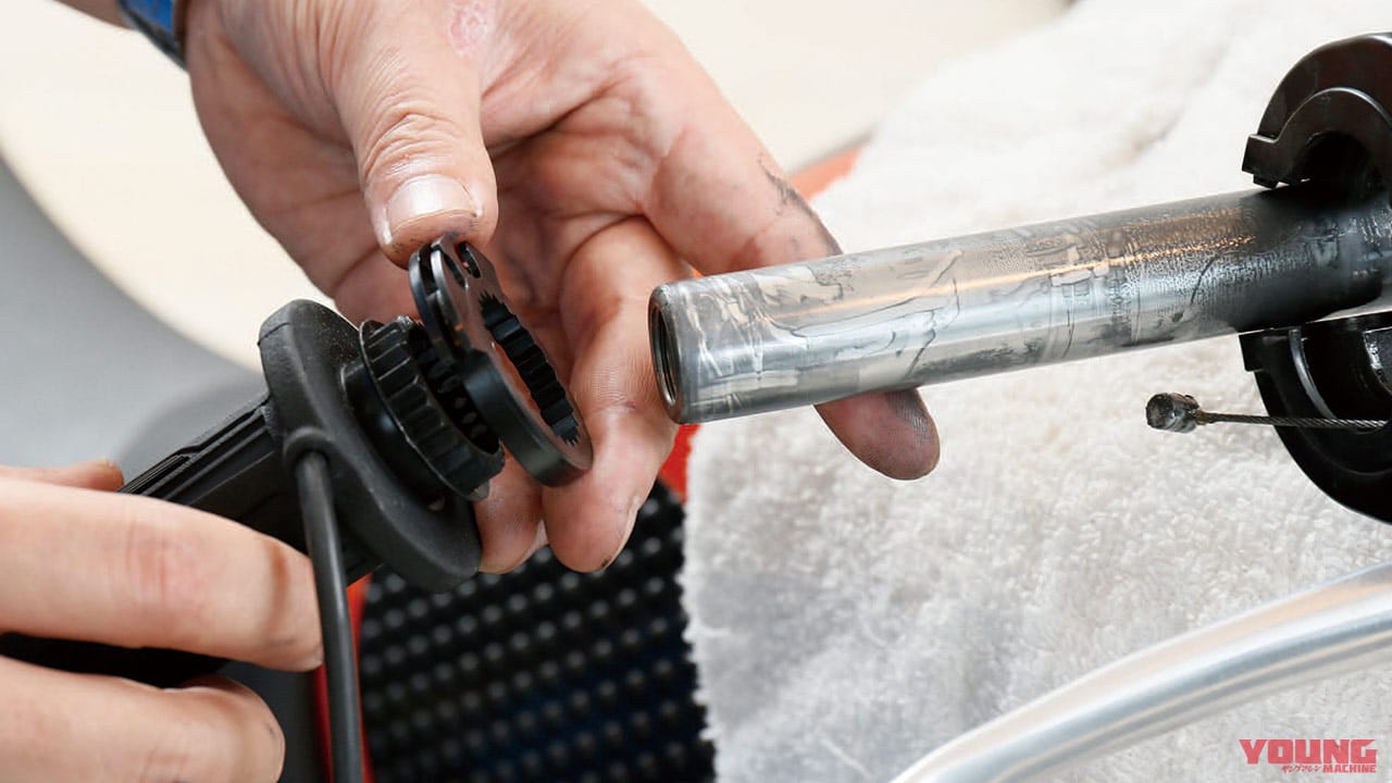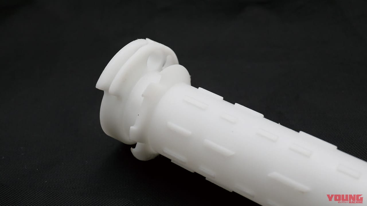キジマのグリップヒーター「GH10」は、新たにスロットルパイプがグリップと一体化されて極限までスリム化。 ついにノーマルと同じ外径Φ32㎜を達成することに成功し、純正時とまったく違和感ないハンドル操作ができるようになった。