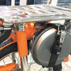 重量物の積載を考慮したカブプロ110と同様の足回りを前後に装着。クッション性が高く幅広のシートは専用だ。タンデムステップは備えずソロ仕様となる。