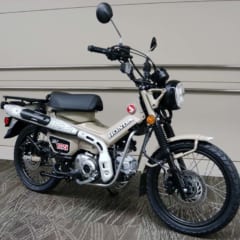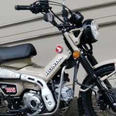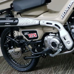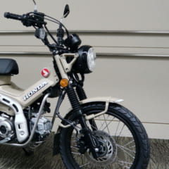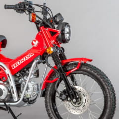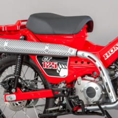 CT125・CT110ともに、オフ車らしいアップハンドルで黒塗装が施されている。CT125は流行のブレースバーを備え、デジモノなどのマウントにも便利。CT125はトップブリッジ上にメインスイッチがあり[…]