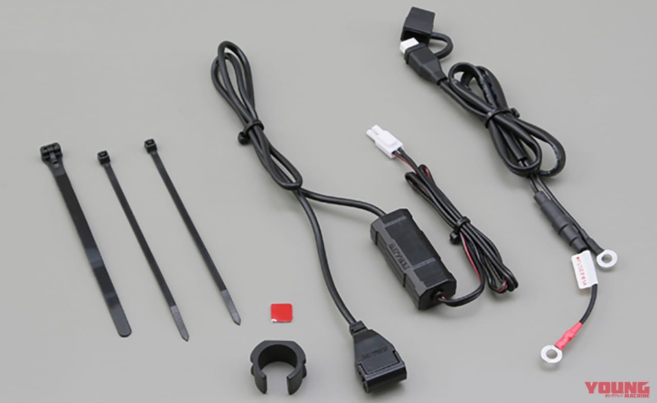 電源の取り出しは、ブレーキスイッチの平端子に割り込ませるだけの簡単取付。電源供給はメインキーに連動してON/OFFされるのでバッテリー上がりなども起こりにくい。