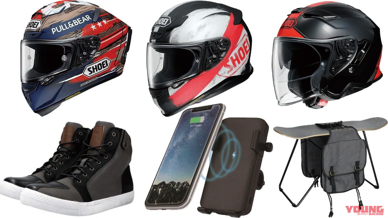 毎月数多くリリースされるバイク部品/用品の中から、注目の新製品アイテムをヤングマシン編集部がセレクト。今回はSHOEIのヘルメット「X-フォーティーンマルケスアメリカ」「Z-セブン・ブローン」「Jクルーズツー・アダージョ」、NOLANのヘルメット「X-lite・X-903」、K・TOUR「スーパーカブC125 リアキャリアー」など12点を紹介しよう。