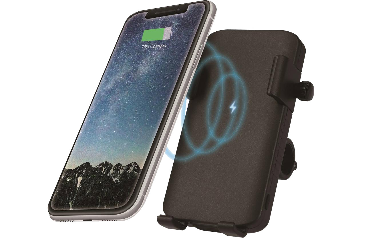 置くだけで簡単に充電のできるワイヤレス充電付きスマートフォンホルダーが発売中だ。さらに充電器本体がモバイルバッテリーになっているので電源の確保も不要。