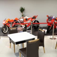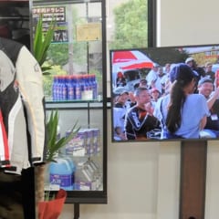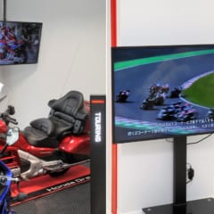 チラシやポスターを省いて店内をスッキリさせるためデジタルサイネージ化が進んでいました。店内には大型モニターが3 台設置され、ホンダドリームの施策説明やイベント映像が流れていました。