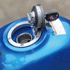 車載工具と書類が収まる左サイドカバーは、メインキーで脱着することができるので簡単。メインキーはオールドウイングマークがあしらわれたウェーブキー。細部まで気使いされている。