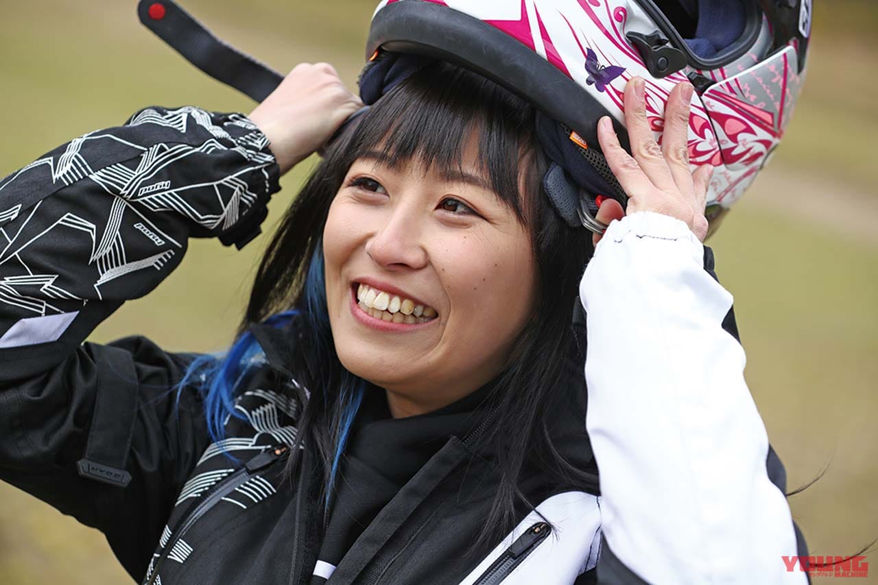岡崎静夏(おかざき・しずか):チャーミングな笑顔でも中身はスパルタンな「バイクフリーク」。’09~’10年、MFJレディースロードレースで2年連続王者に。全日本はGP-MONOを経て’12年からJ-GP3に参戦中。