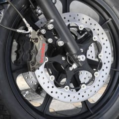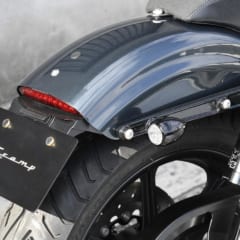フロントフォークは純正ベースにフォークカートリッジをRacingbros SCEPTER-25T(765mm)にグレードアップ。ライトフェンダー[T-3]が軽快だ。