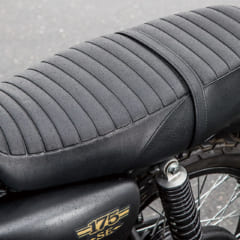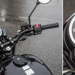 シート高775mmはエストレヤ最終型の735mmよりも高いが、それでも足着き性は非常にいい。ライポジは実にコンパクト(身長175cm、体重62kg)