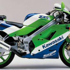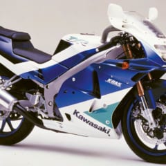 【’90 ZXR250:登場2年目で大変更】早くも2年目で大改修。エンジン内部パーツを変更したほか、新形状のKIS-ARMスイングアーム、フロントラジアルタイヤなどで戦闘力を強化した。