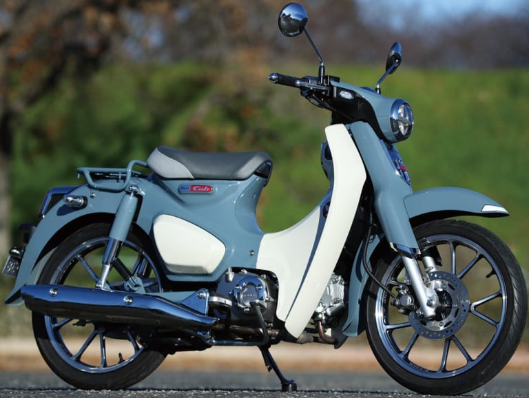 レッグシールドからリヤフェンダーにかけて滑らかな曲面で構成されたシルエット。歴代のスーパーカブらしさを絶妙に残しながら、品のあるスタイリングが授けられている。扱いやすさと低燃費に配慮したエンジンを始め、各装備も充実。
