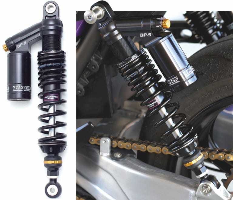 最先端技術を導入したDP-Sは、ツインショック車でスポーツライディングを満喫したいライダーに最適。街乗りやツーリングでも美点は体感できるけれど、この製品の真価が堪能できるのは、やっぱりワインディングやサーキットだろう。