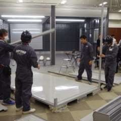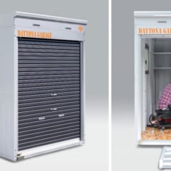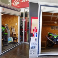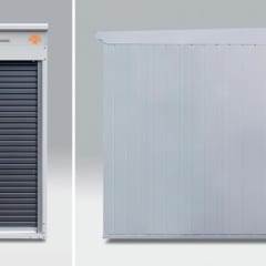 サイズは大から小まで18種類。L(ロールーフ)が9種類、H(ハイルーフ)が9種類ある。最も売れているのは写真の1730H(幅1790×奥3050×高2370mm)。設置面積はコンパクトカー相当と考えるとわかりやすい。バイク単体で中央に入庫しても、左右スペースに余裕があり、メンテナンスもできる(上写真のバイクはヤマハBOLT)。耐荷重は1平方メートルあたり600kg。ホンダのゴールドウイング(約400kg)でも全く問題ない。なおロールーフの入口の高さは1586mm、ハイルーフは1886mmで、入庫しやすさは断然ハイルーフとなる。