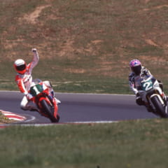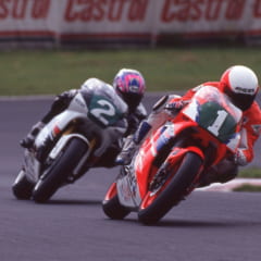 1992年、全日本ロードレース第3戦[菅生]では岡田忠之選手が優勝。原田哲也選手は2位だった。ちなみにタイトルカットは第7戦[菅生]で、最終コーナーでリヤをスライドさせた岡田選手を0.001秒差で逆転し、原田選手が優勝している。