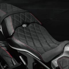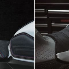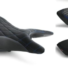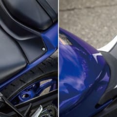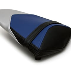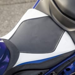【LUIMOTO シートカバー】使用前(左)と使用後(右)。CADとコンピュータ制御のCNCカッターを使用し、複雑な切り返しを実現。各モデル専用の色とデザインも採用する。 ●価格(YZF-R25/R3用):1万1800円~2万6730円(今回使用した"TeamYAMAHA"は1万8590円)