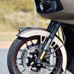 【INDIAN CHALLENGER[2020]】主要諸元■全長2500.7 全幅990.2 軸距1667.8 シート高672(各mm) 車重377kg(燃料満)■水冷4ストロークV型2気筒SOHC4バルブ 1768cc 122ps/5500rpm 18.16kg-m[178Nm]/3800rpm 変速機6速リターン 燃料タンク容量22.7L■ブレーキF=ダブルディスク R=ディスク ■タイヤサイズF=130/60B19 R=80/60R16 ●価格:345万円~ ●色:サンドストーンスモーク