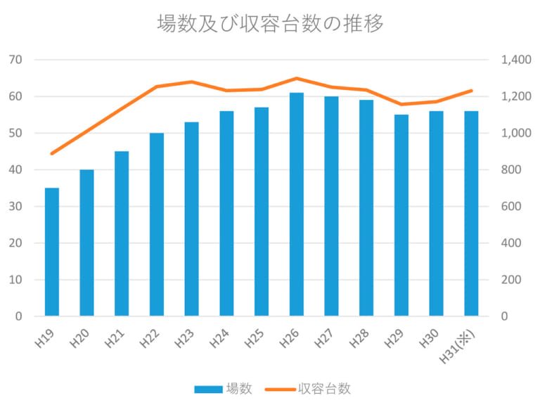 公社管理のバイク用駐車場では平成24年度をピークに利用台数が減り続けている。公社の駐車場は都有地(高架下等)に設置されるため行政利用で閉鎖されることもひとつの要因だが…。