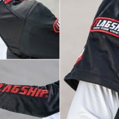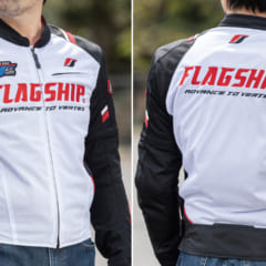 【シティランでも旅先でも映える】製品名の通り、街中に似合うが、ツーリング先でも馴染むフラッグシップならではのデザイン。ファスナー付きの外側ポケットは左胸と左右の 3か所、内ポケットを左胸に備える。袖と裾にベルクロがあり、フィット感を調節可能。愛車に合わせられる豊富なカラバリもうれしい(写真はWHITE&BLACK)。