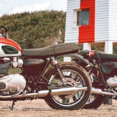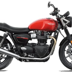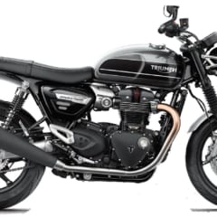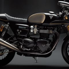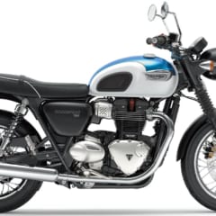 【TRIUMPH T120/T100 BUD EKINS SPECIAL EDITION】■水冷4スト並列2気筒SOHC4バルブ 1200cc 80ps/6550rpm 10.7kg-m/3100rpm ■244kg(乾) シート高790mm 14.5L ■タイヤF=100/90-18 R=150/70 R17 ●価格156万7500/129万3500円 ※諸元はT120