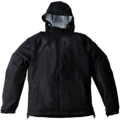 (左)フードは面ファスナーとボタンにより着脱が可能となっている。風が強い時などの走行でバタ付きが気になる場合に心強い。(右)プロテクターにはCE規格のソフトプロテクターを使用。厚みを確保しつつ動きやすさを考えた形状となっているのが印象的。