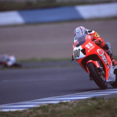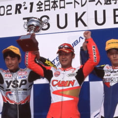 2002年、玉田誠選手はホンダワークスチームとなるチームキャビンホンダのライダーとして、全日本ロードレース選手権の最高峰クラスに参戦(タイヤはダンロップ)。SB/JSB/S-NKの3クラス混走で、玉田選手のマシンはVTR1000SPWでSBクラスだった。写真は優勝した第5戦ツインリンクもてぎ。