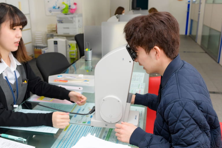 入校手続き時には、まず視力検査を受ける。竜太郎さんは余裕でクリア。まずはちょっと安心!?