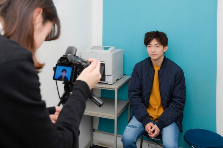 必要な証明写真も、この時に撮ってもらえる(有料)。なぜかやや緊張気味の竜太郎さん……。
